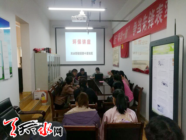 天天天水网讯(通讯员汪文惠)为了提高辖区居民环保知识,倡导全民健康的环保理念,全力打造和谐社区,天水郡街道西十里社区组织居民在社区会议室举行了环保知识讲座。