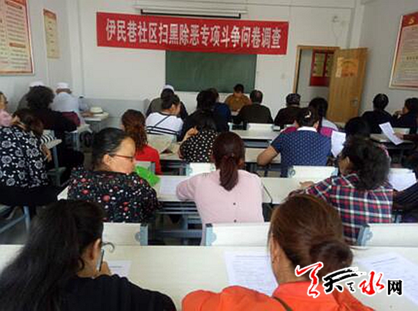 天天天水网讯(通讯员 任秀娟)5月24日下午,中城街道伊民巷社区组织居民在静一心理咨询室开展扫黑除恶专项斗争问卷调查活动,活动主要内容围绕群众知晓率和开展扫黑除恶专项斗争的意见建议等展开。社区工作人员向居民详细宣传扫黑除恶专项斗争的重要性及重点打击对象等相关知识。此次活动使居民对扫黑除恶专项斗争有了更清晰的认识,增强了居民参与扫黑除恶专项斗争的积极性。