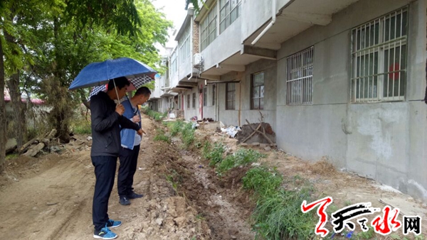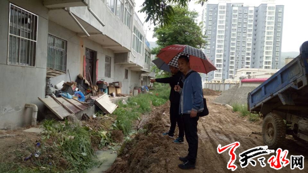 天天天水网讯【通讯员崔小娟】为了有效落实防汛制度,确保辖区安全渡汛,5月27日9时许,秦州区七里墩街道办东十里社区、和谐路社区工作人员冒着大雨,带着雨具来到辖区防汛隐患点开展排查工作,并来到大沟周边平房进行宣传和交流,询问其家中房屋防水等情况,并向居民宣传预防避险、避灾、自救、互救的常识,叮嘱居民一定要注意安全。