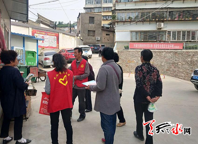 天天天水网讯(通讯员 任秀娟)为更好地营造创建全国文明城市氛围,进一步推进扫黑除恶专项斗争,5月31日上午,伊民巷社区联合辖区单位秦州区民政局积极开展创建全国文明城市暨扫黑除恶宣传活动。