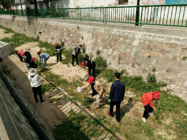 学习讨论结束后,党员们来到豹子沟开展志愿服务活动,他们顶着烈日,发挥不怕苦不怕累的精神,对河道进行了清理,保障汛期排洪安全。