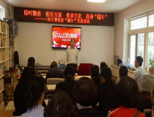 首先,东关街道党工委书记为活动致辞并给大家带来节日的祝福,社区书记介绍端午节的由来、传说故事和习俗活动,感受传统节日折射出的浓郁文化气息,接受爱国主义教育和传统美德教育,让在场的居民感受中华民族传统节日。其次由社区干部为大家带来庆祝中华人民共和国成立70周年诗歌朗诵,《我爱这土地》《端午节想你》《我想......》。活动还结合6月5日世界环境日,由居民代表为大家发出《6.5世界环境日倡仪书》《争做文明市民 争创全国文明城市》的倡仪。呼吁大家从自身做起,从小事做起,共同维护生态环境的保护。