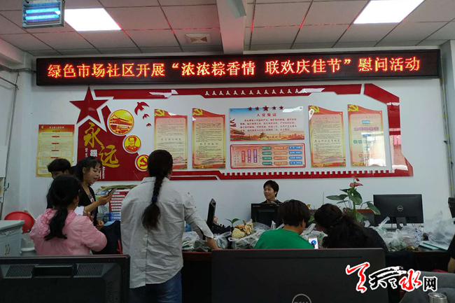 天天天水网讯【通讯员张彬】在端午节来临之际,为了传承民族文化,弘扬中华文明,加强邻里和睦相处,促进和少数民族的联系,6月5日上午,秦州区中城街道办绿色市场社区组织党员、志愿者、居民代表开展了“浓浓粽香情,联欢庆佳节”慰问活动,大家在一起包粽子,共庆端午节。与此同时,还走访慰问了老党员等,向他们致以节日的问候。
