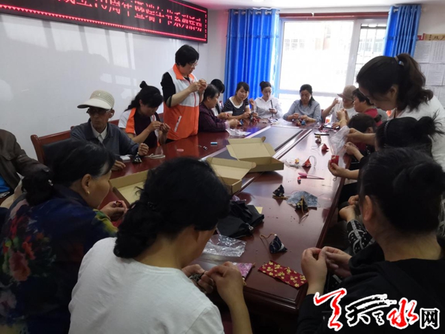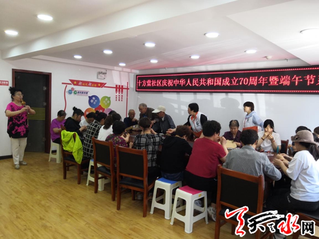 天天天水网讯【通讯员刘丽霞】为弘扬中华民族传统文化,共叙邻里亲情,6月5日下午,秦州区东关街道十方堂社区举办了喜迎国庆70周年,端午节缝荷包比赛活动,社区活动室里充满了欢声笑语,社区党员、居民代表、志愿者、社区全体干部欢聚一堂,开展缝荷包比赛,共庆端午节的到来。