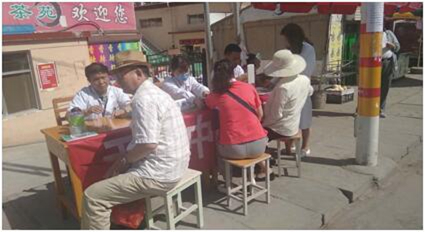 义诊活动的内容非常丰富,包括问诊、测血压、健康咨询、养生宣讲等项目。活动现场不断有居民前来咨询,医护人员对居民提出的健康问题给予现场解答,并对夏季饮食、疾病预防的保健常识进行宣传。有高血压、糖尿病的居民,医务人员还详细询问是否按时服用降压药、降糖药,叮嘱他们及时服药,定期监测血压、血糖,并根据居民的身体状况和饮食情况给予合理建议。
