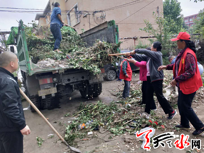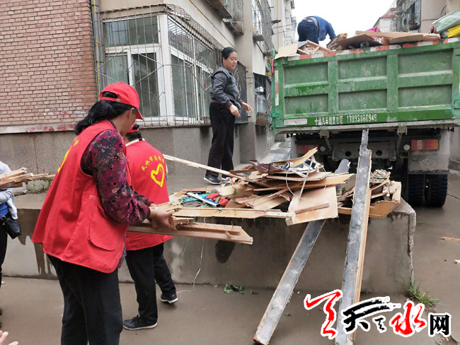 天天天水网讯(通讯员吴娟)为深入开展创建全国文明城市活动,进一步净化环境卫生,推动全域无垃圾持续开展,6月11日,王家磨社区党委组织志愿者队伍联合环卫部门80余人开展卫生死角清理活动。这次主要对精表小区和陇泰家园的建筑垃圾、生活垃圾、楼道内的杂物堆放等死角垃圾进行了清理,志愿者们用实际行动为“创城”助力。