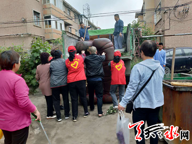活动中,大家发扬不怕脏、不怕累的精神,分工合作,有的负责把零散的垃圾聚到一起集中清理,有的负责把乱堆放的杂物搬到楼下进行处理,大家齐心协力,经过一天的清扫,该小区焕然一新。很快就把楼梯过道各类杂物和小区内乱扔的零散垃圾清理干净了。此次活动共清理垃圾3车,约6余吨。