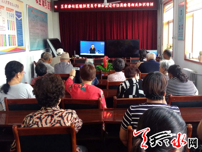 天天天水网讯(通讯员吴娟)6月13日下午,王家磨社区党委组织党员干部群众集中收看甘肃党员智慧云平台先锋讲堂,“重拳出击·扫黑除恶”专题讲座。
