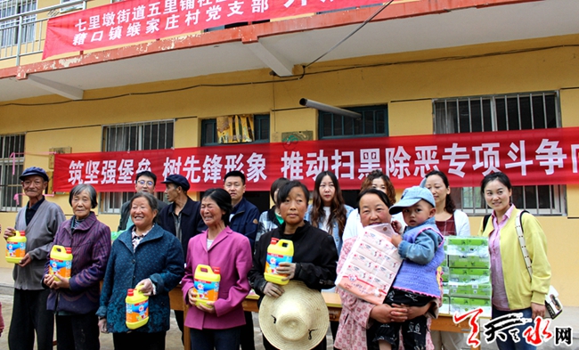 天天天水网讯 为深入贯彻秦州区委、区政府关于开展扫黑除恶专项斗争要求,进一步发挥基层党组织政治优势和组织优势,切实履行好组织群众、宣传群众和服务群众职责,引导和鼓励党员群众全面参与扫黑除恶专项斗争,6月21日上午,秦州区七里墩街道办五里铺社区党委和藉口镇缑家庄村党支部联合开展了“扫黑除恶——基层党组织在行动”城乡党建结对共建主题党日宣传活动。