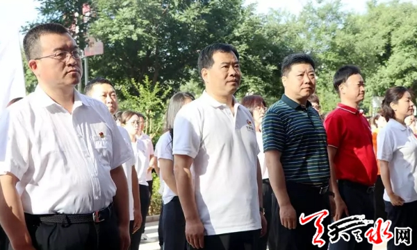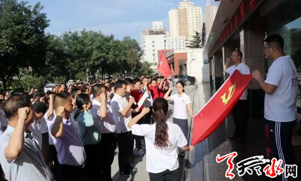 活动中,甘肃银行天水分行党委书记、行长陈金辉带领全体党员面对鲜红的党旗,高举右手庄严宣誓,重温入党誓词,进一步增强党性修养,永葆共产党员的政治本色。