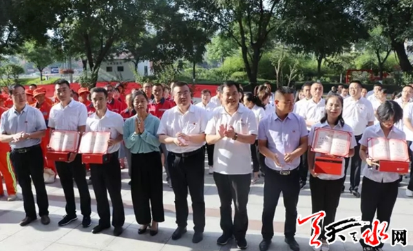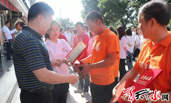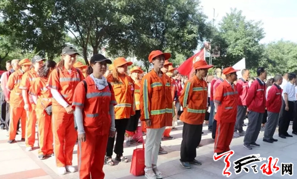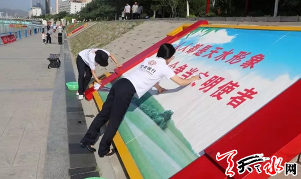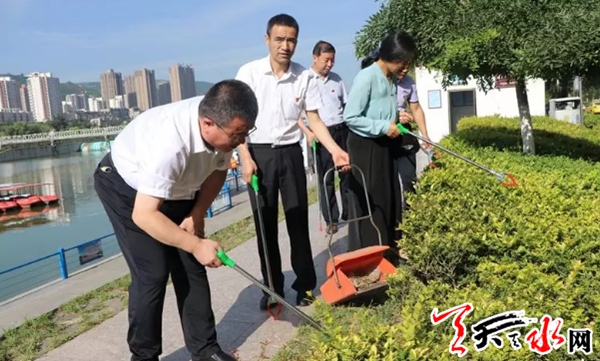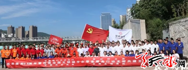 天天天水网讯为响应天水市创建全国文明城市号召,激发党员发挥先锋模范带头作用,并进一步增进政银企合作交流,分享党建经验, 7月1日,在中国共产党建党98周年之际,甘肃银行天水分行联合秦州区城乡环境卫生管理局、甘肃天合实业(集团)有限公司、甘肃永强建设集团开展“庆祝建党98周年暨创建全国文明城市志愿者服务行动”党支部共联共建主题党日活动,用点滴行动汇聚文明力量,助力文明城市创建。