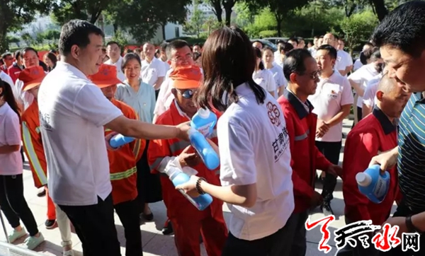 甘肃银行天水分行借“七一”党的生日向辛勤工作的环卫工人表达了深切的问候和崇高的敬意,并向参加活动的环卫工人逐一发放了慰问品。