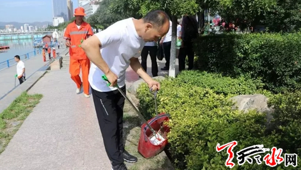 活动当天,天气炎热,但参加活动的党员干部不畏高温,毫不退缩,纷纷领取垃圾钳、垃圾袋、抹布等清扫工具后,认真投入到卫生清洁工作中。此次活动的清扫地点在藉河风景线约2公里的地段,四个单位近200名党员及入党积极分子分组行动,分工合作,对道路、河道、围栏、绿化带、草丛进行了地毯式清理,将触目所及的烟头、纸屑等垃圾和污渍彻底清理干净,有效地美化了周边卫生环境。