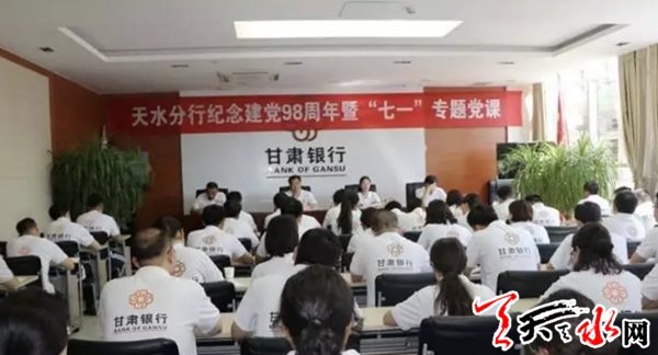 活动结束后,甘肃银行天水分行党委组织开展了纪念建党98周年暨“七一”专题党课。党课在庄严的国歌声中拉开序幕,甘肃银行天水分行党委书记、行长陈金辉以“不忘初心才能永葆朝气”为主题,从忆初心、守初心、践初心三个方面给党员干部上了一堂生动的党课,带领大家回顾了党的发展历程和革命精神,激励全体党员干部磨砺品格,坚守初心,为甘肃银行事业实现新的更大的发展砥砺前行,贡献自己的力量。