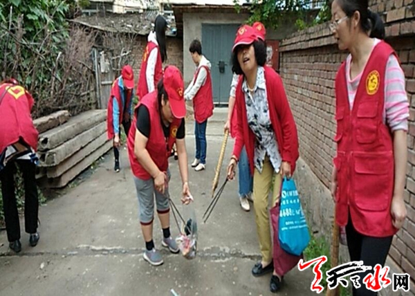 6月28日上午,天水郡街道暖和湾社区组织志愿者们开展打扫卫生环境活动,活动中志愿者带着环保垃圾袋、铁铲、钳子等工具,清除小区绿化带杂草,清理乱堆乱放物品及乱丢垃圾,劝导居民们不要随意乱扔垃圾,号召大家爱护环境,清洁家园。通过这次活动,给社区居民创造了一个干净、整洁的环境,营造了良好的氛围,更好的推进全国文明城市的创建。