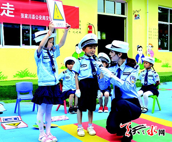 天天天水网讯【记者裴婷婷】6月26日上午,张家川县公安局交警大队宣传民警走进辖区幼儿园,开展“小手拉大手 安全一起走”主题交通安全宣传活动。