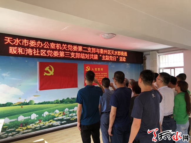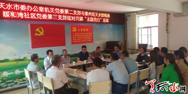 天天天水网讯 为加强社区支部结对共建,整合资源,凝聚力量。7月10日上午,市委办公室机关党委第二支部与秦州区天水郡街道暖和湾社区党委第三支部结对共建开展7月份“主题党日”活动。
