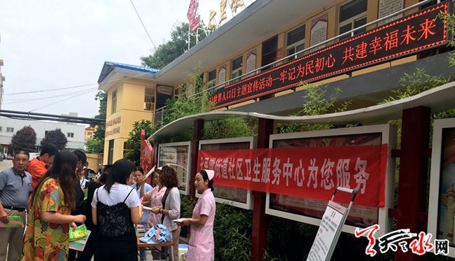 天天天水网讯(通讯员 朱秀娟)今年7月11日是第三十个世界人口日,为了弘扬新型婚育文化,促进生殖健康水平,让辖区居民有个健康幸福的家庭,11日下午,秦州区七里墩街道五里铺社区联合七里墩社区卫生服务中心开展了以“牢记为民初心,共建幸福未来”为主题的7·11世界人口日主题宣传活动。