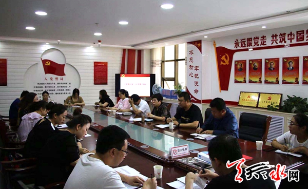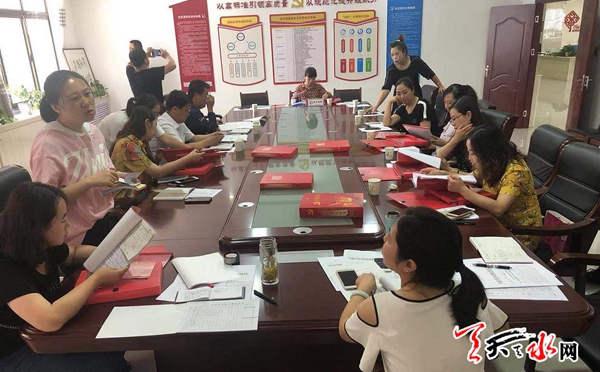 天天天水网讯 7月24日上午,七里墩街道党工委一行带领街道兄弟社区来和谐路社区观摩交流党支部标准化建设工作,观摩结束后,街道党工委班子成员、各社区书记、副书记、党务干部召开了座谈会,就支部标准化建设工作进行了讨论。