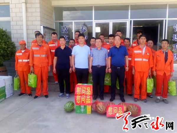 天天天水网讯(通讯员 成朝阳 张建平)近期,持续的高温酷暑天气给公路养护工作带来了考验,7月23日是大暑,公路养护职工仍坚守一线,秦安公路段当天开展“夏季送清凉”慰问活动,为坚持工作在高温酷暑下的一线工人送去了丝丝凉意和关爱。
