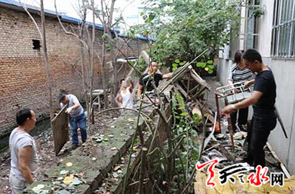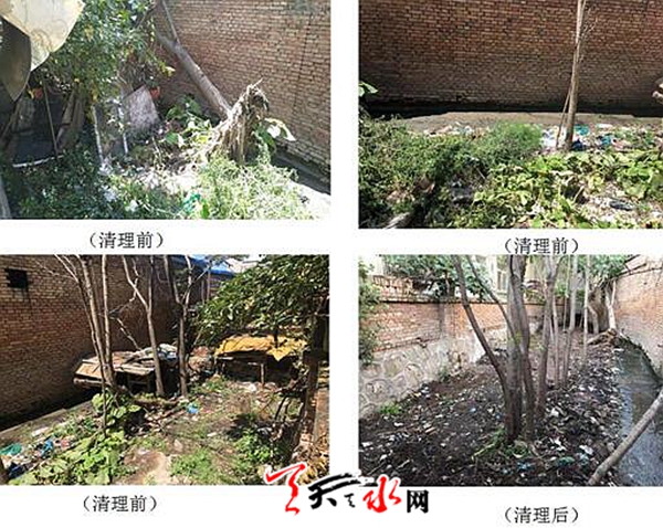 在现场调查中发现,由于天水市林业局家属院排污渠部分是明渠,河道水生植物蔓延,加之一些生活垃圾和废物杂物倾倒其中,造成排水不畅,长期堵塞,污水横溢,造成污染。针对排污渠阻塞问题,由于淤泥垃圾数量较多,需要清理的时间较长,社区于8月3日至8月6日连续4天时间,社区组织50余名居民和志愿者对排污渠周边的各类垃圾进行了集中清理,对周边影响施工的临建进行告知并劝导及时拆除。参与清理的50余名居民和志愿者不怕苦、不怕累、不怕脏、不怕臭,克服炎热、降雨等自然因素的影响,清理各类垃圾3车24余吨。