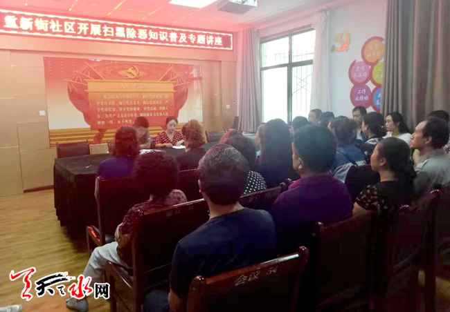 天天天水网讯为深入推进扫黑除恶专项斗争工作的宣传,保障居民安居乐业,有效震慑黑恶势力犯罪行为,营造良好的社区生活环境。8月16日上午,中城街道重新街社区组织辖区居民在社区会议室开展“扫黑除恶知识普及专题讲座”活动。结合实际向居民讲解了打击黑恶势力的有关法律常识,鼓励引导居民遵守法律法规。参加讲座的居民群众共30余人。