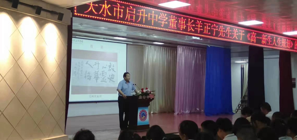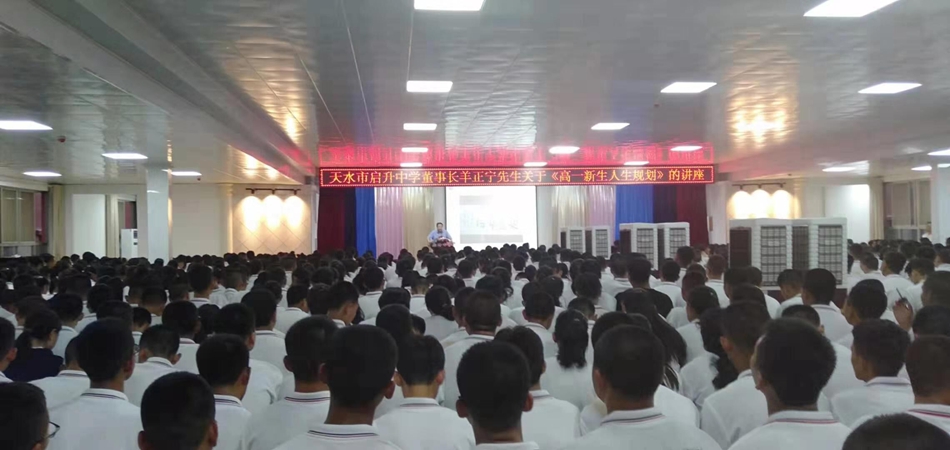天天天水网讯 2019年8月17日,启升中学报告厅人头攒动,蓄势待发。董事长羊正宁给2019届高一新生做专题讲座——向启明星升起的方向奋进,做个有品格的成功人士。讲座由校长赵五成主持。