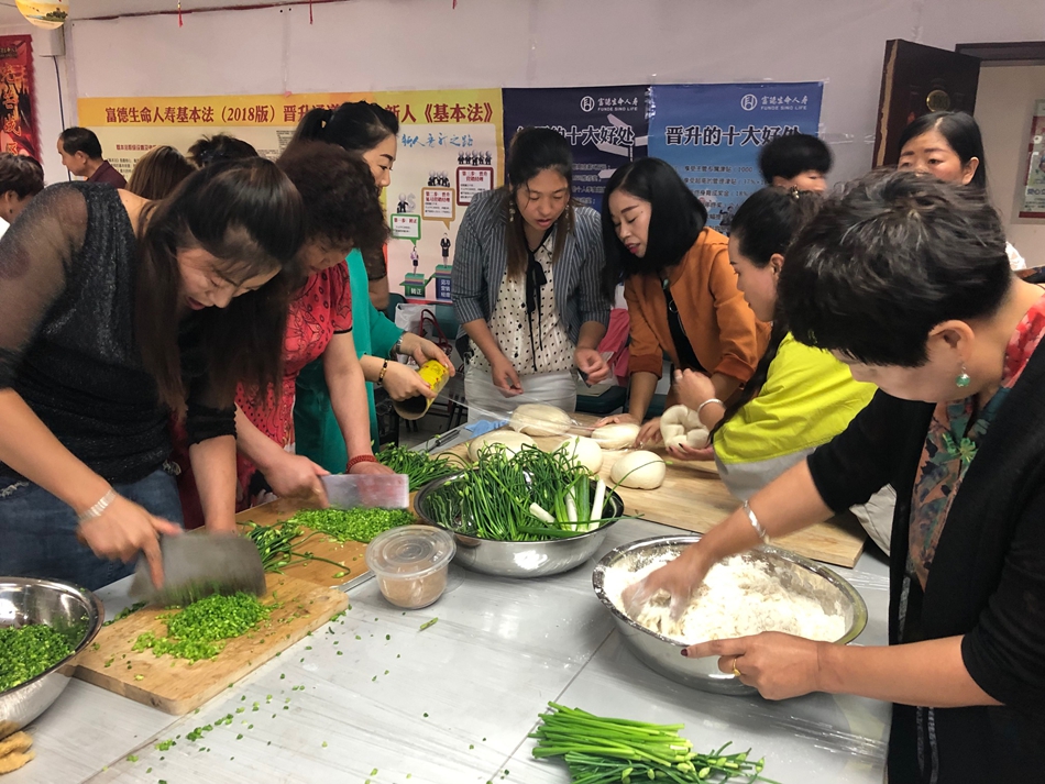 活动中,业务伙伴跃跃欲试,各显厨艺,纷纷拿出自己的看家本领,一道道色香味俱佳的美食很快摆满了餐桌,伙伴们轮流品尝,现场氛围热烈。接下来是团队包饺子环节。业务伙伴分为三个小组比赛包饺子,每个小组分工明确、配合默契,剁馅、切菜、和面、擀皮、包馅、煮饺,一道道工序有条不紊,不一会儿,一盘盘皮薄馅大、金元宝似的水饺就整齐摆上了桌面,大家一拥而上,一眨眼就只剩个空盘子了。大家嘴里吃着香喷喷的饺子,分享着劳动的喜悦,在欢声笑语中伙伴们拉近了彼此的距离。