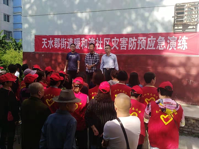 天天天水网讯 为了更好贯彻执行“安全第一,以防为主、全力抢险”的防汛方针,确保辖区居民群众生命财产安全,进一步增强防汛应急抢险能力。8月30日上午,天水郡街道暖和湾社区组织辖区居民40余人开展灾害防御应急演练。