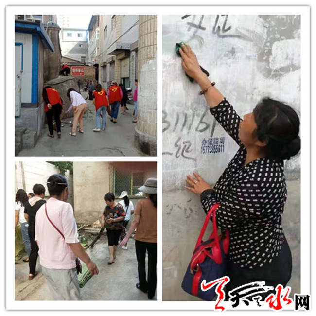 天天水网讯【通讯员张彬】为了巩固提升文明城市创建成果,改善辖区居民生活环境,提升城市形象,近日,秦州区绿色市场社区积极组织辖区单位、志愿行队伍、发动居民群众共45余人深入居民小区、背街小巷,开展了文明城市创建卫生整治行动。