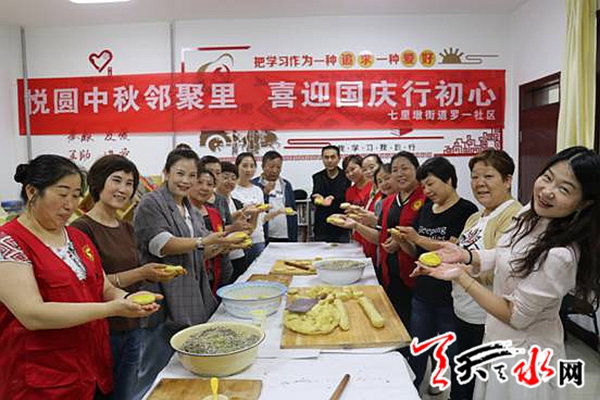 天天天水网讯(通讯员 何思伟)为弘扬中华民族优秀传统文化,喜迎中秋佳节的到来,9月10日下午,七里墩街道罗一社区党委组织辖区党员志愿者,开展“悦圆中秋邻聚里喜迎国庆行初心”手工月饼制作活动,并邀请居民党员、老年人、残疾人一同参与,共度佳节。
