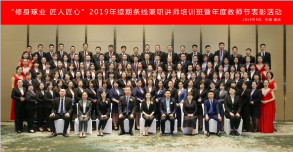 天天天水网讯 为进一步夯实续期条线兼职讲师队伍建设,完善兼职讲师体系,加强培训力量,表彰年度优秀讲师,总公司保费部于2019年9月6日-9月11日在重庆举办“2019年续期条线兼职讲师培训班暨年度教师节表彰活动”,公司副总经理李燕总、总公司保费部徐红永总、重庆分公司都凯总莅临活动现场。