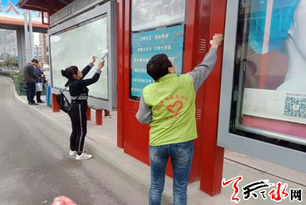 天天天水网讯(通讯员 韩雪梅)为营造干净、整洁、有序的城区环境,向新中国成立70周年献礼,天水郡街道瀛池社区在全辖区组织开展“集中清理小广告干干净净迎国庆”活动,对小区内,各路段及公交站牌等地方的小广告进行一次全面彻底的清理。