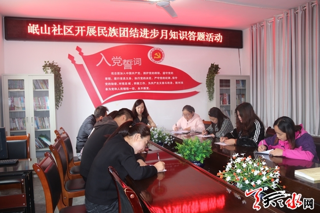 天天天水网讯【通讯员郭斌】为进一步增强民族团结意识,普及、宣传党的民族政策法规和理论知识,巩固和发展平等、团结、互助、和谐的社会主义民族关系,9月19日上午,秦州区七里墩街道岷山社区积极组织开展以“维护民族团结”为主题的民族团结知识问卷答题活动,社区全体工作人员参加。