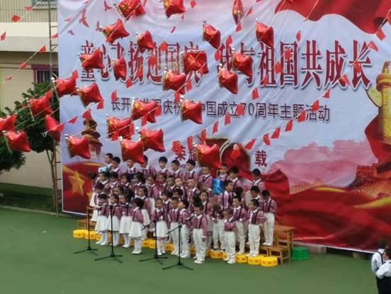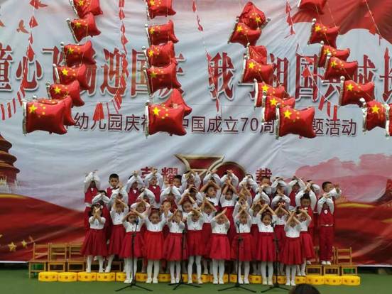 早上9点,演出在威严的国歌声中拉开了序幕。幼儿、教师以舞蹈、亲子活动、朗诵、合唱等多种形式庆祝祖国的节日。一个个精彩的节目精彩纷呈、让人应接不暇。孩子们如花朵一般尽情地绽放。