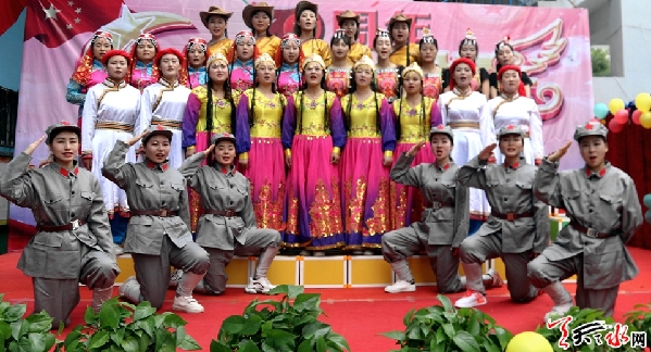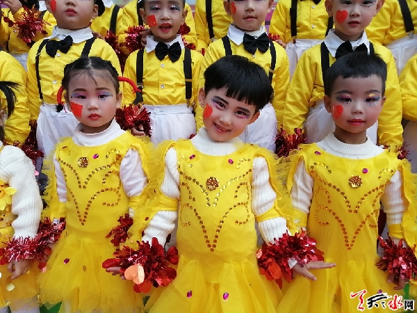 随着雄壮的“义勇军进行曲”音乐响起,全体师生举行了庄严的升国旗仪式,师生们向冉冉升起的五星红旗行注目礼,现场气氛庄严神圣。 庆祝活动以一首《献给祖国妈妈的爱》拉开了序幕。幼儿班的孩子们载歌载舞,稚嫩的歌声回荡在校园的上空。《国旗国旗多美丽》《歌唱祖国》《祖国我亲爱的祖国》《我爱你中国》等节目精彩纷呈,师生们用一首首优美动听的歌曲传唱出对祖国的热爱。独唱、合唱、快板、诗朗诵等一系列节目为浓厚的节日增添了喜庆氛围。