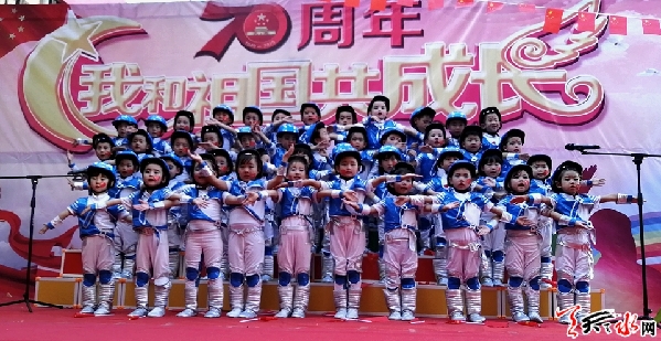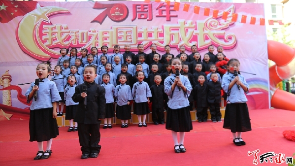 天天天水网讯【记者 张文都】红歌代代传,歌声颂祖国。9月27日至28日,清水县永清镇育苗幼儿园、德隆育苗幼儿园、毓秀育苗幼儿园联合举办了以“我和祖国共成长”为主题的“迎国庆、颂祖国”活动,喜迎中华人民共和国成立70周年华诞。