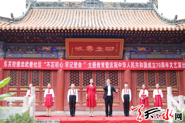 天天天水网讯【通讯员 邢周祥】近日,东关街道忠武巷社区举办 “不忘初心,牢记使命”主题教育暨庆祝中华人民共和国70周年文艺汇演。