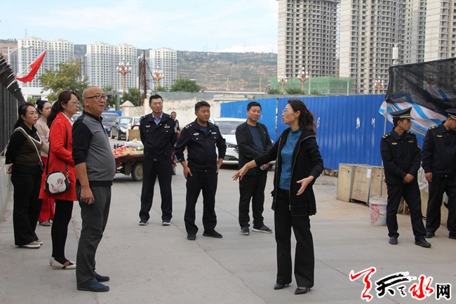 9月24日下午,由街道调研组组织区综合执法局天水郡中队、天水郡环卫所、秦州交警郊区大队、天水郡派出所、辖区企事业单位,物业公司深入天水郡小学巷道、四中家属院、天水长仪小区及厂区、天水二一三厂等街道各社区、辖区相关职能部门就辖区背街小巷老旧小区就环境卫生综合整治中的重点难点问题进行实地调研。