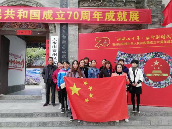 天天天水网讯 为深入开展“不忘初心、牢记使命”主题教育,弘扬爱国主义精神,提升党员党性修养, 10月18日上午,秦州区七里墩街道五里铺社区组织党员干部在陕西会馆开展“主题党日”活动,参观了庆祝中华人民共和国成立70周年成就展。