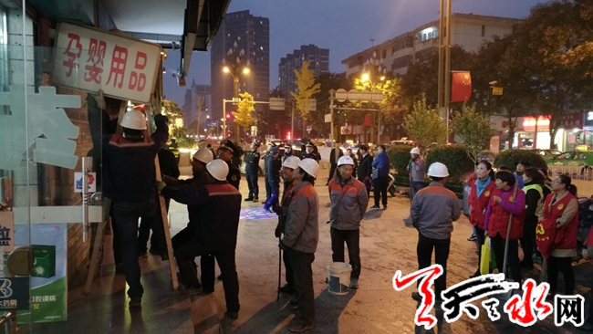 天天天水网讯【通讯员 邢周祥】创建全国文明城市工作进入倒计时,时间紧、范围广、任务重。11月5日,东关街道办事处联合综合执法、环卫、住建、市场监管(食药监、工商)、交警、派出所等部门,对忠武巷、北园子、合作巷、建设路乱搭乱建,倚门经商,乱涂乱画,乱堆乱放等影响创城现象进行拉网式、地毯式整顿。