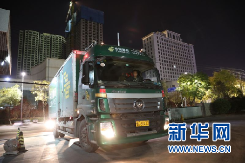 11月10日晚,中国邮政集团公司兰州市分公司的工作人员正在对苹果邮件进行卸货、分拣和再次邮寄。杜哲宇 摄