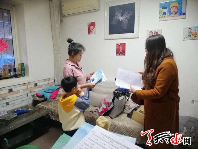 社区党委书记于亚江带领社区工作人员入户到居民家中,为居民讲解创建全国文明城市相关知识,并为居民发放《天水市创建全国文明城市调查问卷》。
