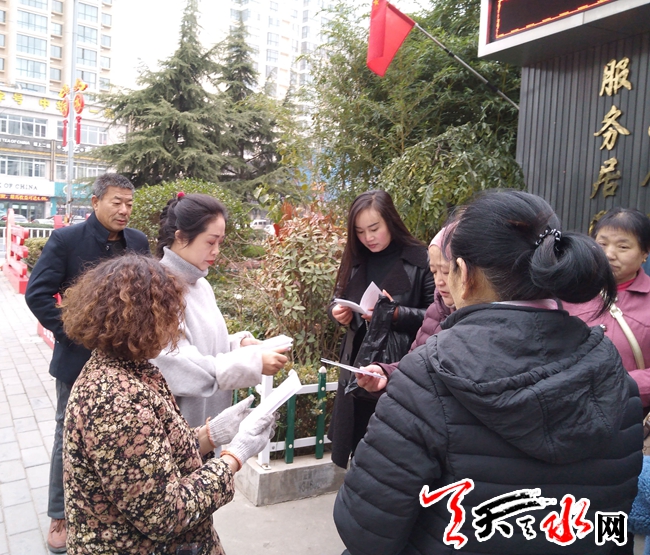天天天水网讯 为了预防和制止家庭暴力,保护家庭成员的合法权益,维护平等、和谐、文明的家庭关系,促进家庭社会稳定。11月26日,重新街社区开展“反对家庭暴力、构建和谐家庭”宣传活动。