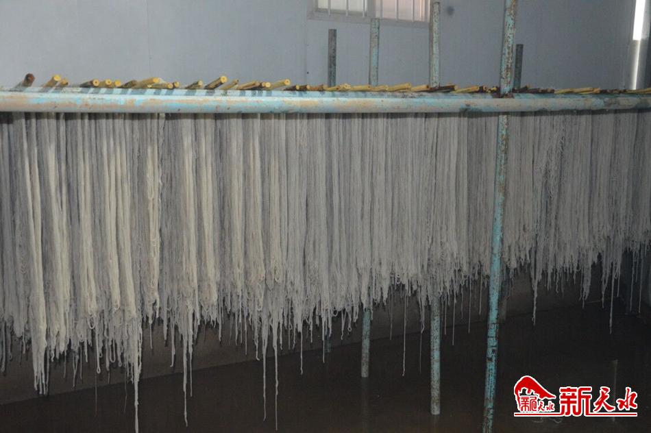经过精选、清洗、分离、沉淀、提取、加热、和面、漏粉、冷冻、晾晒等近20道工序,“土疙瘩”洋芋就变成了晶莹透亮、光滑爽口的粉条。近年来,甘谷县八里湾镇中岔村凭借着粉条加工这一产业,闯出了一条致富路,成为远近闻名的“手工粉条村”。