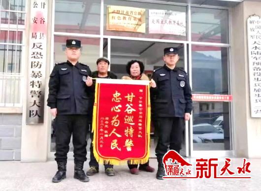 新天水讯【天水晚报记者 王琳】甘谷县一男子手机丢失后,被巡逻的民警查获并返还,该男子为了表达感激之情,上门赠送锦旗给民警。