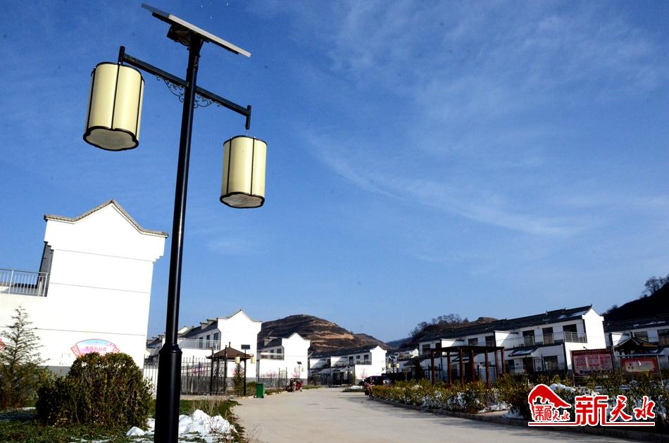 12月4日,冬日的暖阳静静地洒在峁水河畔,在秦州区杨家寺镇芦水新村安置点,漂亮精致的太阳能路灯整齐划一,白墙灰瓦、错落有致的幢幢院落在湛蓝的天空下,美如画卷。推开一扇大门,搬出危房住进新家的白志斌老人正在温暖的新房内享受着安逸的时光。对年近古稀的白志斌来说,坐在新房内看电视、喝茶是一件让他觉得特别惬意的事情。