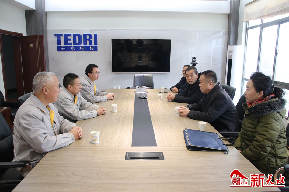 新天水讯【天水日报记者马放】1月17日上午,市人大常委会主任蒋晓强带领市委组织部、市人社局、市工信局有关负责人到天水电气传动研究所有限责任公司,看望慰问联系专家王有云和朱奇先,向他们送去了党委和政府的关心关怀,并通过他们向全市科技工作者致以亲切的问候和新春的祝福。