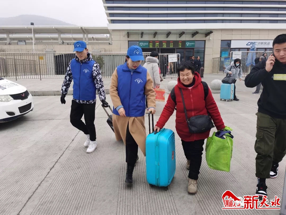 据了解,24名“蓝精灵”大学生志愿者还加入到春运服务队伍,和车站工作人员一起为重点旅客提供“信息咨询”“紧急求助”“失物招领”“行李助携”“母婴候车”等特色服务,为旅客创造平安、有序、温馨的出行环境。 春运期间因客流较大,天水车站建议旅客提前准备,留好充足的售(取)票、进站、候车、检票、上车时间;按照车站的引导标识或者工作人员的安排,在指定车厢位置安全线以内排队等候,等列车停稳后上车;及时关注天气情况,适当增减衣物。