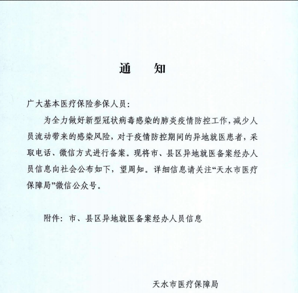 疫情防控期间 天水异地就医采取电话微信方式备案